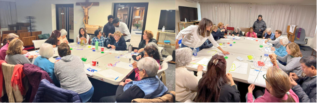 It is with great joy and Our Lady’s intercession that a group of devoted women from St. James Parish gathered to learn to make cord rosaries on a Saturday morning in November. The group, who faithfully feels the importance of the rosary, accepted the gentle call from our Mother. The session began with Fr.Shaji leading the women in prayer and with his asking our Lady to open their hearts and minds as they gathered in faith. As always, our Lady came through and all the Rosary makers were successful in their creations. The members joyfully dedicated their time and patience while trying to learn this new skill. There was much camaraderie and helpful assistance from everyone as they completed their task. The group then assured their Pastor, Father Joseph, that they would accept the challenge to make rosaries for the youth in the schools, and anyone requesting a rosary. HCFM would like to acknowledge the ladies from St. James Parish and their sacrifice of time, and pray that they feel the grace and gratitude Our Lady imparts on all who do her work.